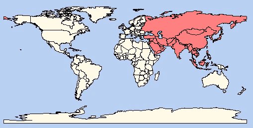 All of Asia Afghanistan Aleutian180 Armenia Azerbaijan Bahrain Bangladesh Bhutan Brunei Burma Myanmar Cambodia China Christmas Island Gaza Strip Georgia ssr Hong Kong India Iran Iraq Iraq-Saudi Arabia Neutral Zone Israel Japan Johnstown Atoll Jordan Kazakhstan Kuwait Kyrgyzstan Laos Lebanon Macau Malaysia Maldives Mongolia Nepal North Korea Oman Pakistan Paracel Islands Philippines Qatar Russia-West Russia-Central Russia-East Saudi Arabia Singapore South Korea Spratly Islands Sri Lanka Svalbard Syria Taiwan Tajikistan Thailand Turkey Turkmenistan United Arab Emirates Ukraine Uzebkistan Vietnam West Bank Yemen